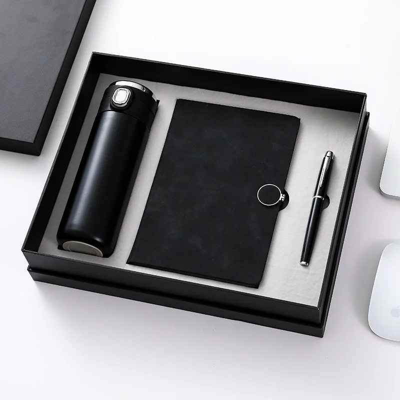 Wholesale Custom Logo Journal Button PU Leather Notebook Set Business Card Holder Insulated Water Bottle Business Gift